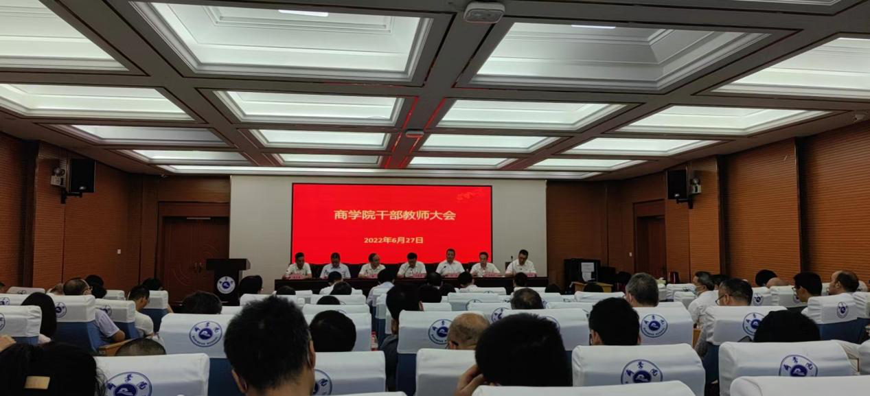 6月27日上午,pg电子中国官方网站在A405报告厅举行干部教师大会,校党委来院宣布学院党委主要负责人调整决定。校党委书记汪俊昌出席会议并讲话,校党委副书记沈赤主持会议,副校长、党委委员黄坚宣布干部任免决定,校党委委员、组织部部长宣绍龙出席会议,学院党政领导班子成员、全体教职工参加大会。