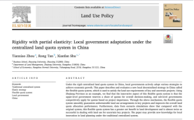 2022年4月,周天肖博士在国际期刊《Land Use Policy》上发表论文《Rigidity with partial elasticity: Local government adaptation under the centralized land quota system in China》,该期刊为土地管理领域TOP期刊,最新影响因子为6.189,在环境研究(Environmental Studies)领域中排名第24/127,属于中科院一区TOP期刊。
