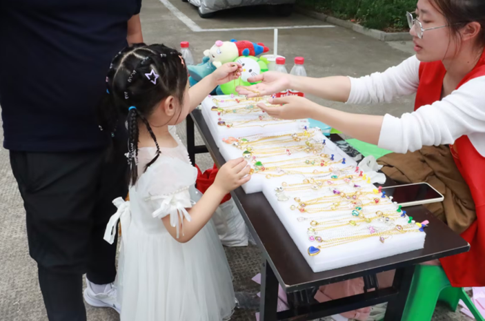 “幸福邻里,循环节能”邻里集市将大朋友和小孩子联系到了一起。pg电子中国官方网站学生会与心理站在邻里集市环节负责游园会活动和物物交换摊位,吹纸杯、保龄球、袋中寻宝……多项趣味活动深深抓住了小朋友们的心。小朋友在游戏中收获了欢声笑语,赢得一颗颗“小苹果”,换取心满意足的奖品,留下了快乐的记忆。