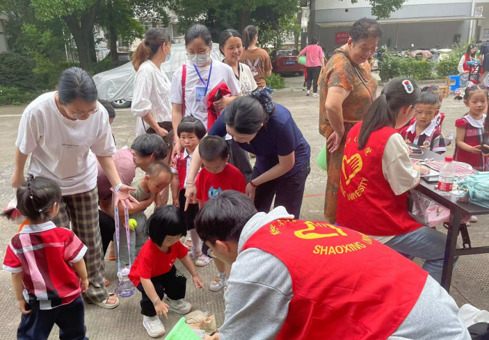 关爱儿童成长,志愿服务社会。为进一步加强少年儿童思想道德教育,在全社会营造共同关心爱护未成年的良好氛围,让祖国的花朵灿烂绽放、向阳成长,同时宣传亚运精神,带动绍兴人民做好充分准备迎接亚运,绍兴文理学院pg电子中国官方网站学生会与心理站同长城社区幼儿园开展合作,在浙江绍兴市越城区北海街道党工委的正确领导下,于六一儿童节上午在河山桥社区中心举办“童心向党迎亚运 弘扬家国情 礼赞新时代”游园活动。本次活动分为汇演与邻里集市两个环节。