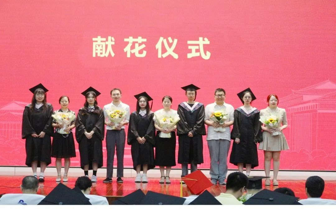 毕业生代表们为马林老师、马宁宁老师、罗昌瀚老师、赵宝山老师、郑博阳老师、曾红老师、陈煌狄老师、黄文静老师、杨智杰老师、江伊蕾老师献花。