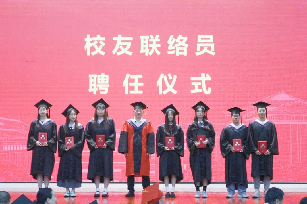 院长王华锋老师为2023届毕业生代表李嘉豪、商龄天、李蒙娜、任一天、李彤、赵琪、商炜、朱奥特颁发校友联络员聘书。