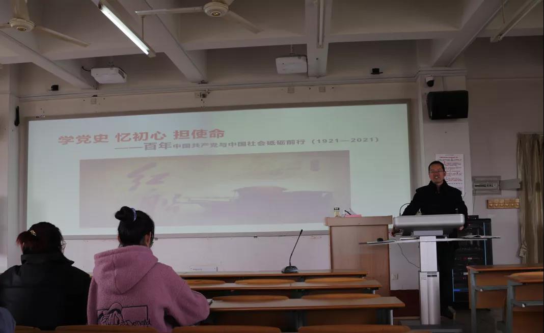 上午10:00,法学191第一节思政课,任课教师裘斌为同学们做了“学党史,忆初心,担使命”的开学第一课,从四个方面向同学们讲解了党100年的发展历史。