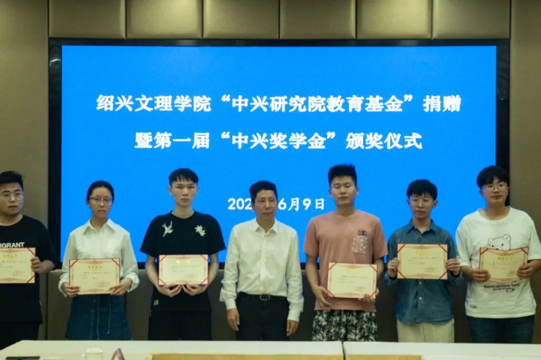 6月9日下午,“中兴研究院教育基金”捐赠暨第一届“中兴奖学金”颁奖仪式在铁城科教馆一楼会议室隆重举行。浙江中兴会计师事务所所长马洪明及事务所班子成员,绍兴市财政局会计处副处长张挺,校党委副书记沈赤、副校长黄坚,pg电子中国官方网站院长周鸿勇、党委副书记(主持工作)史正东、副院长严照良、副院长丁志刚、党委副书记周建强、副院长邵青及获奖学生代表参加颁奖仪式。仪式由周鸿勇主持。