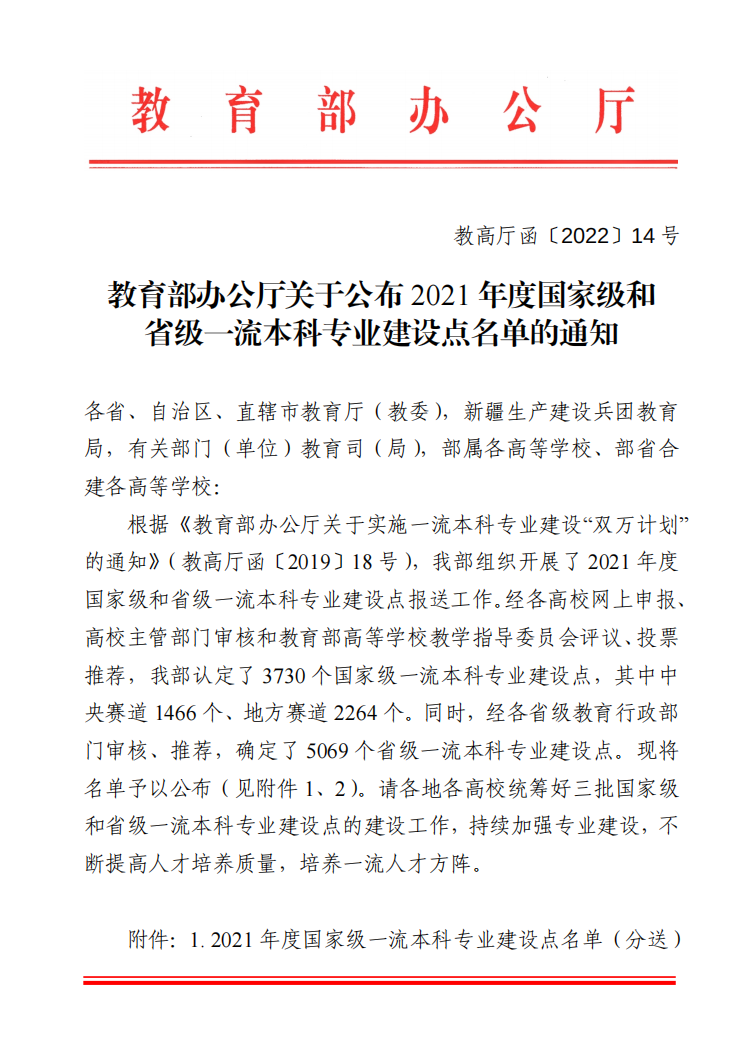 近日,教育部办公厅发布《关于公布2021年度国家级和省级一流本科专业建设点名单的通知》(教高厅函 [2022] 14号),pg电子官网工商管理专业成功入选国家级一流专业建设点。这是校院两级高度重视、全力以赴、团结奋斗取得的振奋人心的成果,是对学院专业内涵建设的充分肯定。