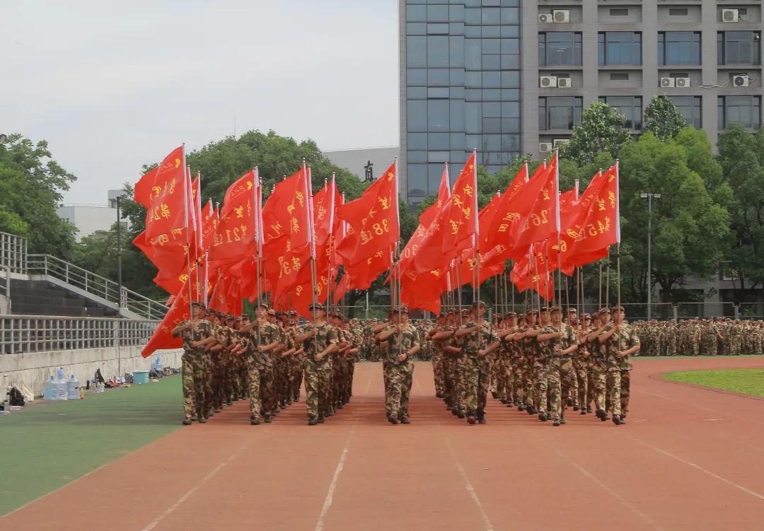 灿烂夏日,操场上一队队迷彩服在阳光下散发着青春的朝气与热情,在激昂的音乐声下,在教官们的声声指令中,学子们迈着铿锵步伐,顶着夏日骄阳,整齐有序地向前迈进,展现了商院学子的独特魅力。