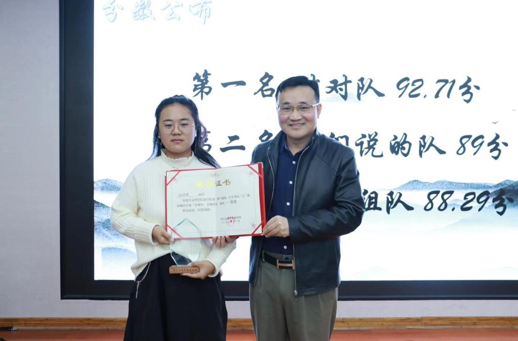 最终三支队伍斩获本次讲坛三金,分别是一等奖:徐洪成(对对队),二等奖:吴丽娜、傅琳艳(我们说的队),三等奖:欧阳浩棋、唐宇杰(快来组队),吴磊、尹启华、林立分别为获奖选手颁奖。